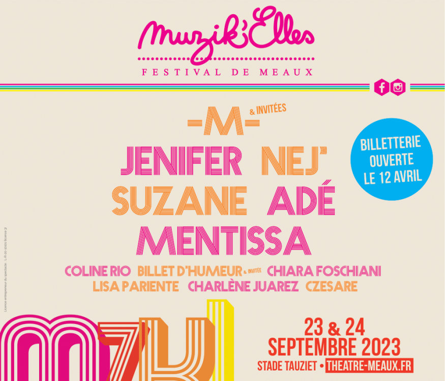 L'ouverture de la billetterie du festival les Muzik'Elles à Meaux. M, Jenifer, Adé et bien d'autres sur la scène du stade Tauziet les 23 et 24 septembre prochain. Réservations sur theatre-meaux.fr ou via votre réseau habituel.