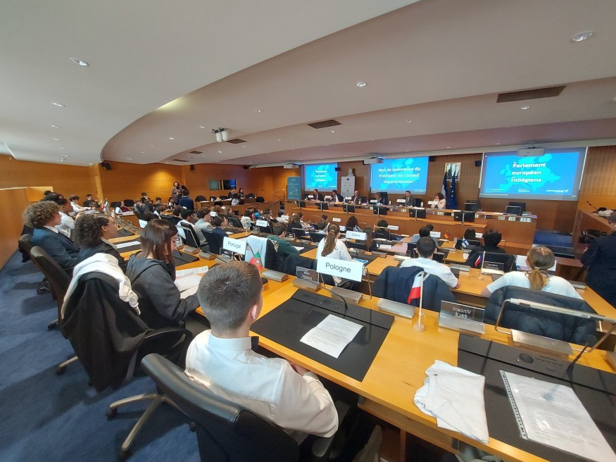 54 collégiens en classe de troisième qui ont endossés le rôle de députés européens.