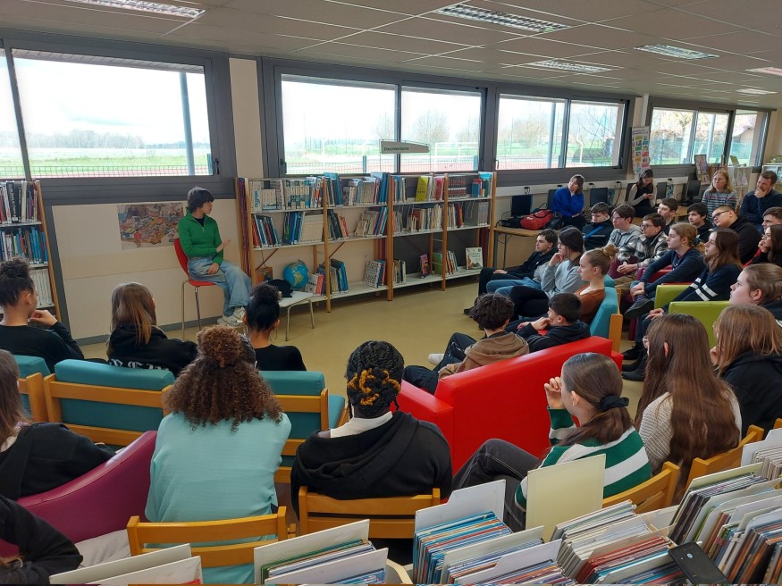 Naïla Guiguet, lauréate du César 2023 pour le Meilleur Scénario Original pour le film "L'Innocent", est retrounée dans son ancien collège Charles Péguy à Verneuil-l'Étang dans le cadre du dispositif : “Un artiste à l’école”.