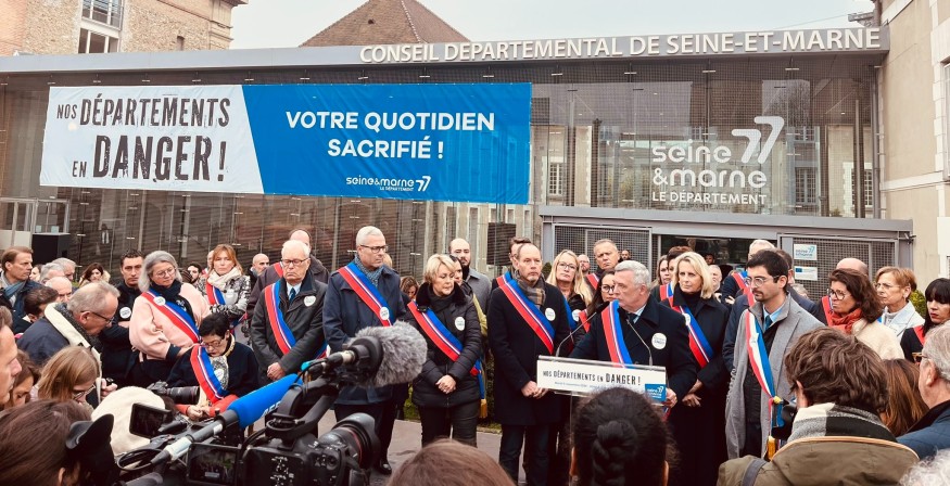 Des dizaines de maires rassemblés autour du Président du Département de Seine-et-Marne ce matin. Mobilisation pour dénoncer les économies demandées par le gouvernement aux collectivités. Et donc aussi au conseil départemental présidé par le LR Jean-François Parigi.